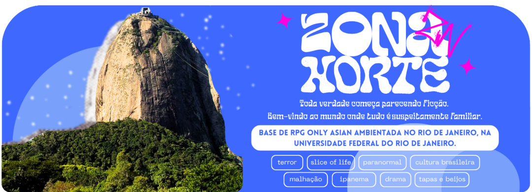 ,,AVISOS DE CONTEÚDO:,, conteúdo sexual, drogas ilícitas, violência gráfica, horror corporal, crimesNa UFRJ, a sua vida acontece entre um ônibus lotado e a próxima cerveja gelada. É trabalho em grupo que nunca funciona, trote maluco, rolê na praia, gritaria por jogo de futebol, aula perdida por causa de ressaca, xerox atrasado e amores que duram menos que uma greve. A galera vai do bandejão pro bar sem culpa, e do bar pra umas experiências que viram lenda (às vezes, até literalmente). A Ilha do Fundão, seu lar pelos próximos meses, pulsa de música alta, de calor humano, de caos, de gente com pressa e de gente que parou de correr.Aqui, todo mundo tá tentando: não ser humilhado pela vida acadêmica, passar em cálculo I, pegar olhante na calourada, organizar manifestação, esconder o desespero e às vezes falhando miseravelmente em tudo. E no meio disso tudo, tem coisa estranha demais rolando pra ser só coincidência. Num dia você tá se estressando com seu professor de humanas sendo performático e no outro, tem um sagui roubando o sofá da sala de estar — e você ainda pode dar o azar de estar em cima dele enquanto eles te levam.Mas deixa essa conversa pra depois. Por enquanto, aproveita o rolé. Enquanto ainda dá.E é rolé. Não rolê. Tu tá no RJ, cara. Vê se abre o olho, valeu?"A Zona Norte é um RPG ambientado na cidade do Rio de Janeiro, onde os personagens têm a experiência completa de um universitário brasileiro médio. Aqui, a vida gira entre a fila do bandejão, a república com goteira, a camisa do seu time, a cerveja quente na esquina e aquele seminário que ninguém preparou. Mas no meio da farra, da ressaca e do desespero acadêmico, alguma coisa pra lá de estranha começa a ferver por baixo da cidade. É a casa pro jogador de RPG que gosta da farra e da festa — raízes do RPG do meio da pandemia, quem lembra? — mas também gosta da gameplay de mesa, terror e investigação. Aqui, nosso maior diferencial é a união e o balanço entre o nosso conhecido e amado (odiado também) RP, mas dando total destaque também ao G da sigla.A ZN mistura a comicidade caótica das sitcoms brasileiras como Tapas e Beijos, Toma Lá, Dá Cá e A Grande Família com o drama intenso e passional das novelas que marcaram o país como Avenida Brasil, Verdades Secretas, Amor à VIda e Malhação (As boas. Sim, teve uma ou outra). Só que com uma diferença: aqui, a coisa é mais suja, mais quente e mais viva. A trama costura realismo com bizarrice, e o cotidiano urbano com elementos do sobrenatural. As influências vêm direto do nosso folclore, reinterpretado com liberdade criativa, mas com respeito às raízes — muito inspiradas pela série Cidade Invisível e pelas pesquisas de Luis da Câmara Cascudo. Mas claro, a bizarrice aqui nunca se limita à algo já conhecido: tem casos absurdos rolando por aqui em um nível que só alguém que já viu Saramandaia pode entender.Nossa jogabilidade tem como base o sistema de RPG Ordem Paranormal, por Rafael Lange, ou simplesmente Cellbit. Só que, claro, com alguns ajustes totalmente nossos — feitos para tornar o sistema atrativo, simples e mais compreensível para o público que joga o RPG de Twitter! E de modo que não sacrifique a sensação de realmente estar jogando algo com o personagem que você mesmo criou. Só não vai deixar ele morrer, combinado?A Zona Norte é sobre os contrastes: é festa e é luta. É a aula às 7h e a rave que termina às 6h. É o grito preso na garganta e o riso descontrolado depois da quarta latinha. É o real e o irreal se misturando devagar. Aqui, ninguém é herói. É todo mundo tentando viver, pagar aluguel, não repetir de semestre... e lidar com umas paradas aí que ninguém deveria saber.